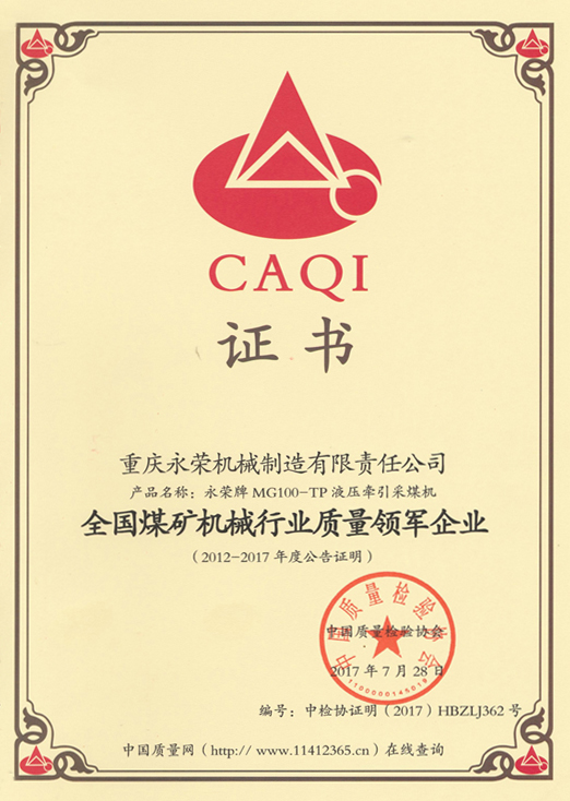 全國(guó)煤礦機(jī)械行業(yè)質(zhì)量領(lǐng)軍企業(yè)
