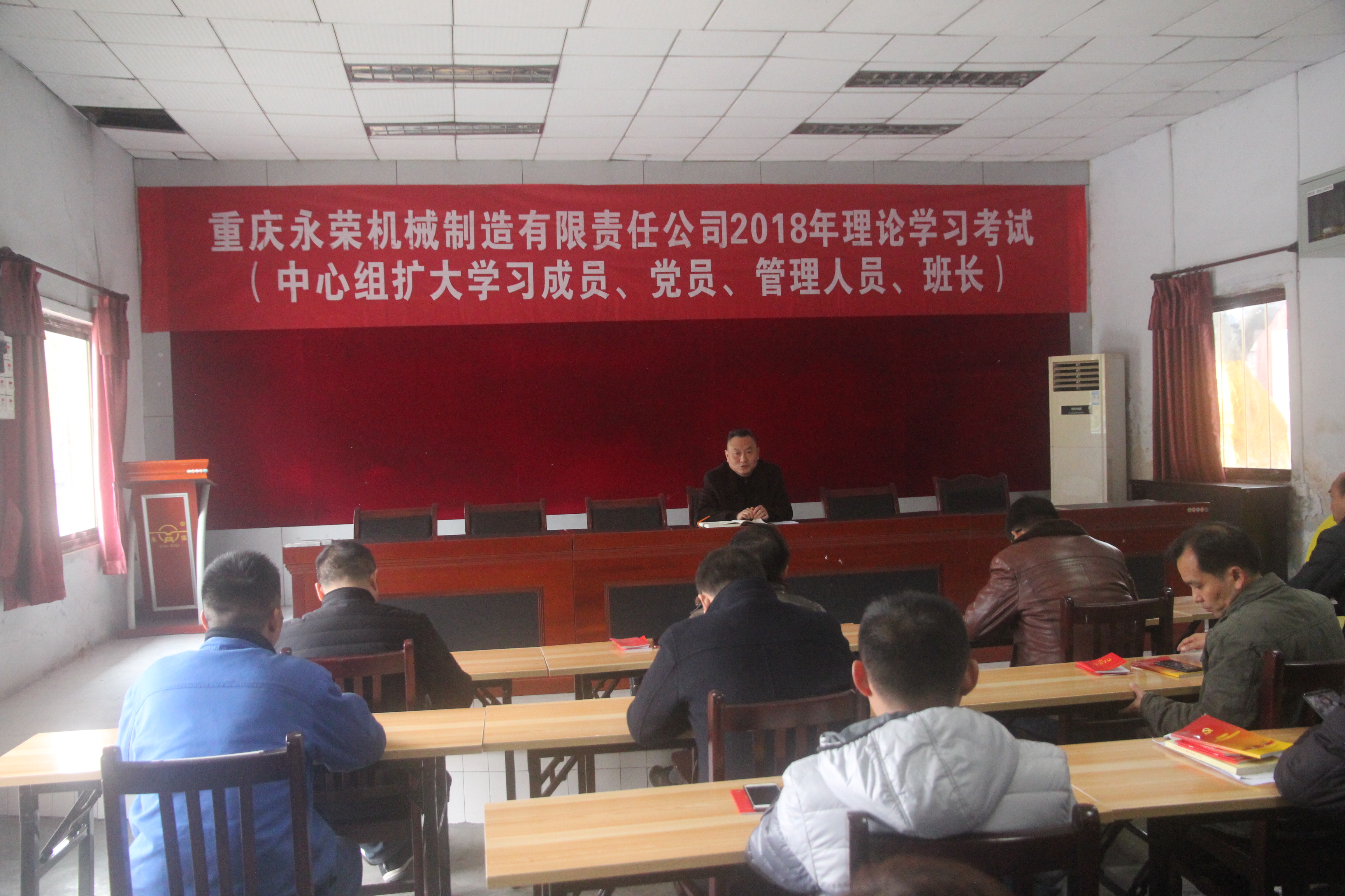 為檢驗(yàn)和鞏固一年來(lái)的理論學(xué)習(xí)效果,11月26日下午,永榮機(jī)制公司黨委在二會(huì)議室組織開(kāi)展了2018年理論學(xué)習(xí)考試,共69名擴(kuò)大中心組學(xué)習(xí)成員、黨員、管理人員、班長(zhǎng)參加了此次考試,黨委書(shū)記蒲江平同志到現(xiàn)場(chǎng)監(jiān)督考試并作考前講話。